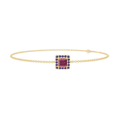 « L'ATELIER » Nº 200442Bracelet Or jaune 9 carats - Rubis Princesse 0.3 carat - Halo Saphir bleu - Chaîne Forçat
