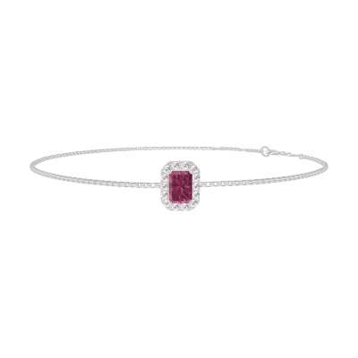 « L'ATELIER » Nº200464Bracelet Or blanc 9 carats - Rubis Rectangle 0.3 carat - Halo Diamant - Chaîne Vénitienne