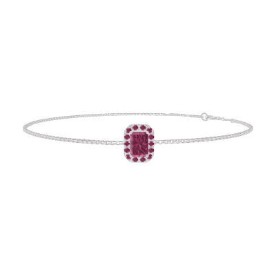 « L'ATELIER » Nº200471Bracelet Or blanc 18 carats - Rubis Rectangle 0.3 carat - Halo Rubis - Chaîne Vénitienne