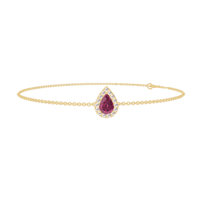 « L'ATELIER » Nº200521Bracelet Or jaune 18 carats - Rubis Poire 0.3 carat - Halo Diamant - Chaîne Forçat