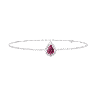 « L'ATELIER » Nº 200524Bracelet Or blanc 9 carats - Rubis Poire 0.3 carat - Halo Diamant - Chaîne Forçat