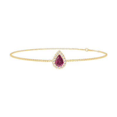 « L'ATELIER » Nº200525Bracelet Or jaune 18 carats - Rubis Poire 0.3 carat - Halo Diamant - Chaîne Vénitienne