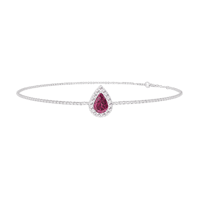 « L'ATELIER » Nº200527Bracelet Or blanc 18 carats - Rubis Poire 0.3 carat - Halo Diamant - Chaîne Vénitienne