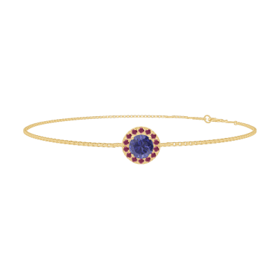 « L'ATELIER » Nº 200597Bracelet Or jaune 18 carats - Saphir bleu Rond 0.3 carat - Halo Rubis - Chaîne Vénitienne 4.7 (3)