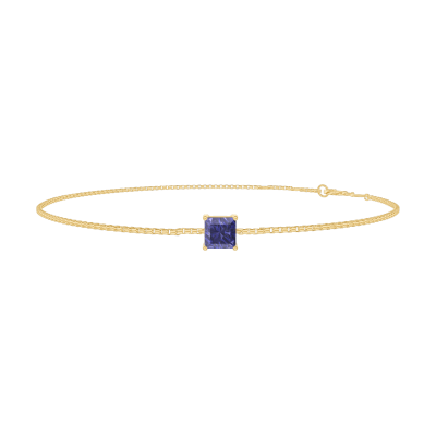« L'ATELIER » Nº 200614Bracelet Or jaune 9 carats - Saphir bleu Princesse 0.3 carat - Chaîne Vénitienne