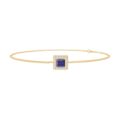 « L'ATELIER » Nº200621Bracelet Or jaune 18 carats - Saphir bleu Princesse 0.3 carat - Halo Diamant - Chaîne Vénitienne