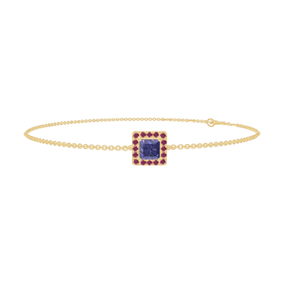 « L'ATELIER » Nº200626Bracelet Or jaune 9 carats - Saphir bleu Princesse 0.3 carat - Halo Rubis - Chaîne Forçat