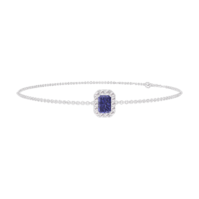 « L'ATELIER » Nº 200652Bracelet Or blanc 9 carats - Saphir bleu Rectangle 0.3 carat - Halo Diamant - Chaîne Forçat