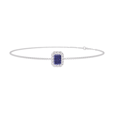 « L'ATELIER » Nº 200656Bracelet Or blanc 9 carats - Saphir bleu Rectangle 0.3 carat - Halo Diamant - Chaîne Vénitienne