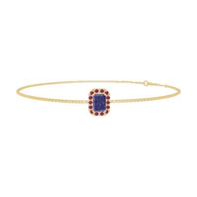 « L'ATELIER » Nº 200662Bracelet Or jaune 9 carats - Saphir bleu Rectangle 0.3 carat - Halo Rubis - Chaîne Vénitienne
