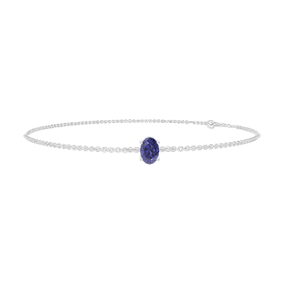 « L'ATELIER » Nº 200675Bracelet Or blanc 18 carats - Saphir bleu Ovale 0.3 carat - Chaîne Forçat