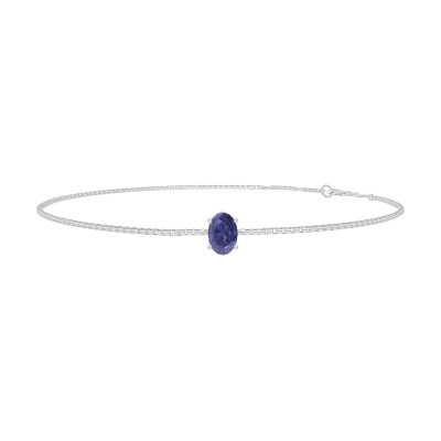 « L'ATELIER » Nº200679Bracelet Or blanc 18 carats - Saphir bleu Ovale 0.3 carat - Chaîne Vénitienne