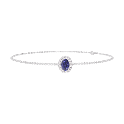 « L'ATELIER » Nº 200684Bracelet Or blanc 9 carats - Saphir bleu Ovale 0.3 carat - Halo Diamant - Chaîne Forçat