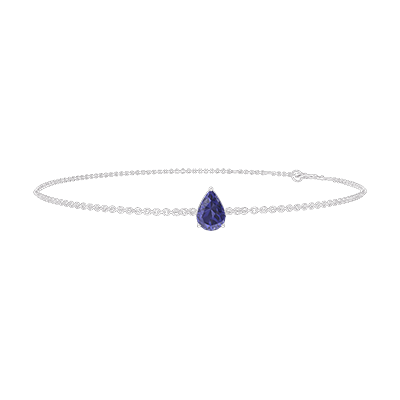« L'ATELIER » Nº200707Bracelet Or blanc 18 carats - Saphir bleu Poire 0.3 carat - Chaîne Forçat