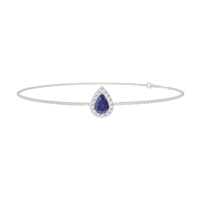 « L'ATELIER » Nº 200720Bracelet Or blanc 9 carats - Saphir bleu Poire 0.3 carat - Halo Diamant - Chaîne Vénitienne