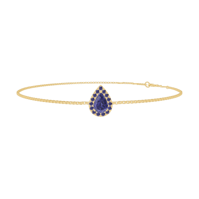 « L'ATELIER » Nº200733Bracelet Or jaune 18 carats - Saphir bleu Poire 0.3 carat - Halo Saphir bleu - Chaîne Vénitienne