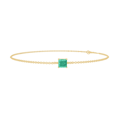 « L'ATELIER » Nº 200801Bracelet Or jaune 18 carats - Émeraude Princesse 0.3 carat - Chaîne Forçat