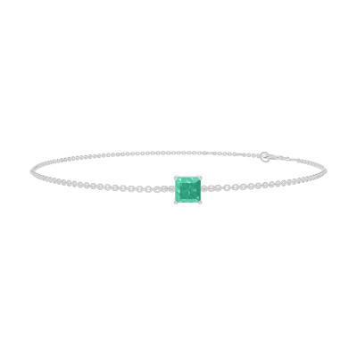 « L'ATELIER » Nº200804Bracelet Or blanc 9 carats - Émeraude Princesse 0.3 carat - Chaîne Forçat