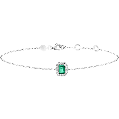 « L'ATELIER » Nº 200843Bracelet Or blanc 18 carats - Émeraude Rectangle 0.3 carat - Halo Diamant - Chaîne Forçat