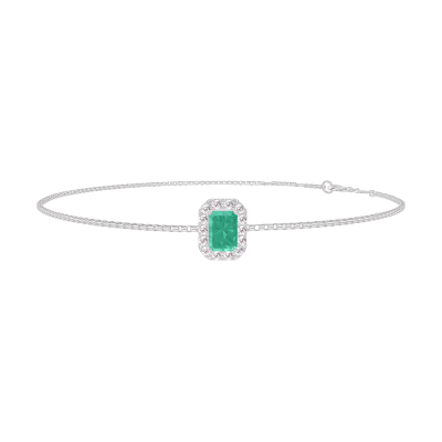 « L'ATELIER » Nº200848Bracelet Or blanc 9 carats - Émeraude Rectangle 0.3 carat - Halo Diamant - Chaîne Vénitienne