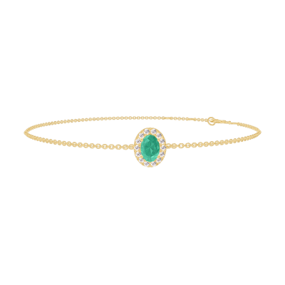 « L'ATELIER » Nº 200874Bracelet Or jaune 9 carats - Émeraude Ovale 0.3 carat - Halo Diamant - Chaîne Forçat