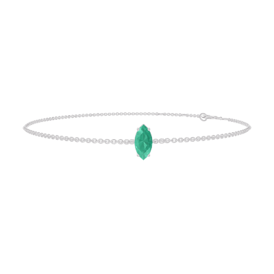 « L'ATELIER » Nº 200931Bracelet Or blanc 18 carats - Émeraude Marquise 0.3 carat - Chaîne Forçat