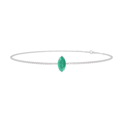 « L'ATELIER » Nº 200936Bracelet Or blanc 9 carats - Émeraude Marquise 0.3 carat - Chaîne Vénitienne