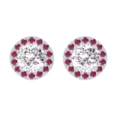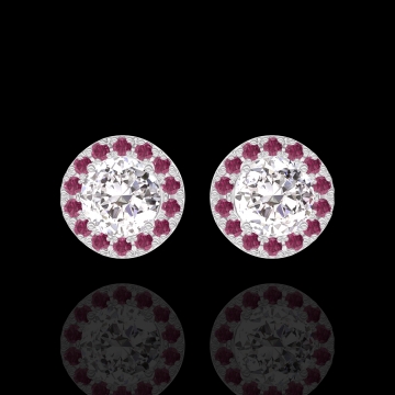 « L'ATELIER » Nº201067Boucles d'oreilles Or blanc 18 carats - Diamant synthétique Rond 0.3 carat (2 X) - Halo Rubis 5 (3)