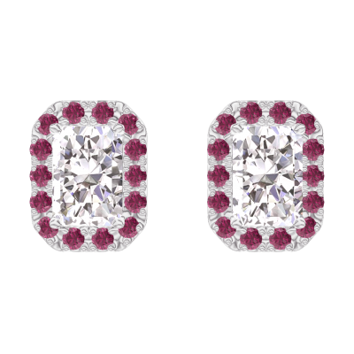 « L'ATELIER » Nº 201099Boucles d'oreilles Or blanc 18 carats - Diamant synthétique Rectangle 0.3 carat (2 X) - Halo Rubis