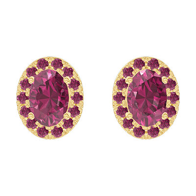 « L'ATELIER » Nº201209Boucles d'oreilles Or jaune 18 carats - Rubis Ovale 0.3 carat (2 X) - Halo Rubis