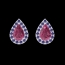 Boucles d'oreilles Or blanc 9 carats - Rubis Poire 0.3 carat (2 X) - Halo Saphir bleu
