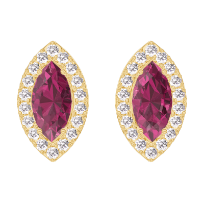 « L'ATELIER » Nº 201238Boucles d'oreilles Or jaune 9 carats - Rubis Marquise 0.3 carat (2 X) - Halo Diamant