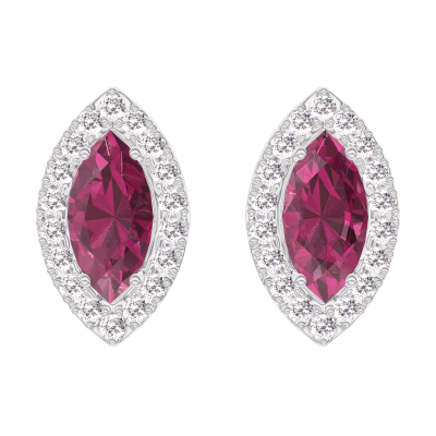 « L'ATELIER » Nº 201239Boucles d'oreilles Or blanc 18 carats - Rubis Marquise 0.3 carat (2 X) - Halo Diamant