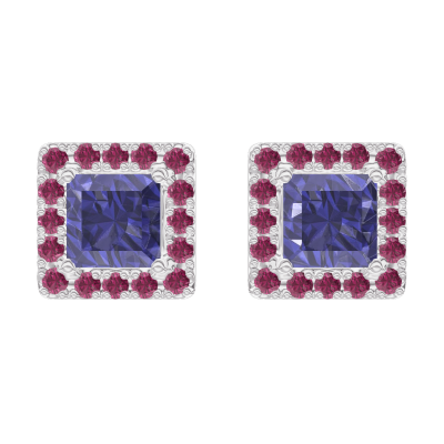 « L'ATELIER » Nº201275Boucles d'oreilles Or blanc 18 carats - Saphir bleu Princesse 0.3 carat (2 X) - Halo Rubis