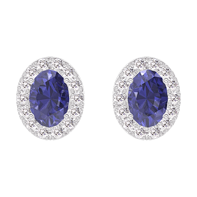 « L'ATELIER » Nº 201304Boucles d'oreilles Or blanc 9 carats - Saphir bleu Ovale 0.3 carat (2 X) - Halo Diamant