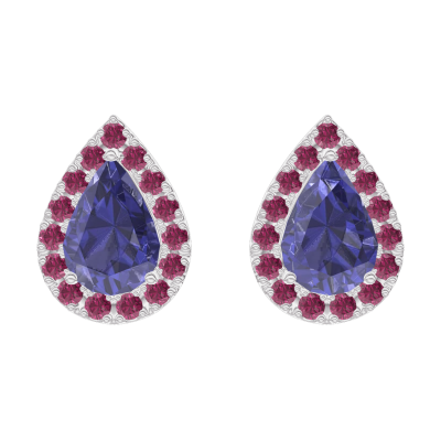 « L'ATELIER » Nº201323Boucles d'oreilles Or blanc 18 carats - Saphir bleu Poire 0.3 carat (2 X) - Halo Rubis