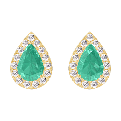 « L'ATELIER » Nº201413Boucles d'oreilles Or jaune 18 carats - Émeraude Poire 0.3 carat (2 X) - Halo Diamant