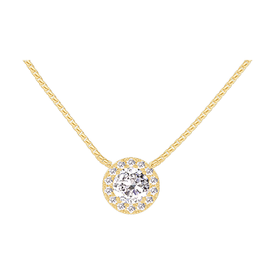 « L'ATELIER » Nº201453Collier Or jaune 18 carats - Diamant Rond 0.3 carat - Halo Diamant - Chaîne Vénitienne