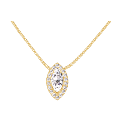 « L'ATELIER » Nº201614Collier Or jaune 9 carats - Diamant Marquise 0.3 carat - Halo Diamant - Chaîne Vénitienne