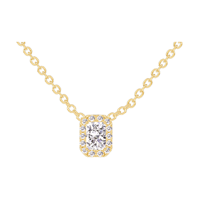 « L'ATELIER » Nº201706Collier Or jaune 9 carats - Diamant synthétique Rectangle 0.3 carat - Halo Diamant synthétique - Chaîne Forçat
