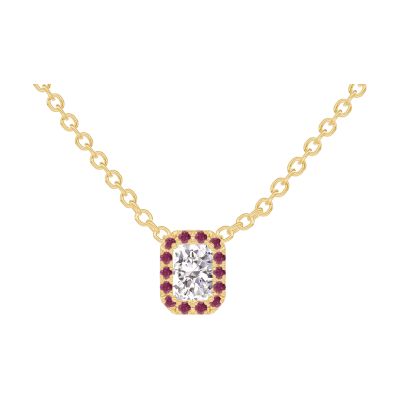 « L'ATELIER » Nº201714Collier Or jaune 9 carats - Diamant synthétique Rectangle 0.3 carat - Halo Rubis - Chaîne Forçat