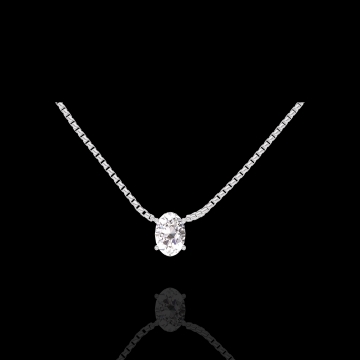 « L'ATELIER » Nº201735Collier Or blanc 18 carats - Diamant synthétique Ovale 0.3 carat - Chaîne Vénitienne