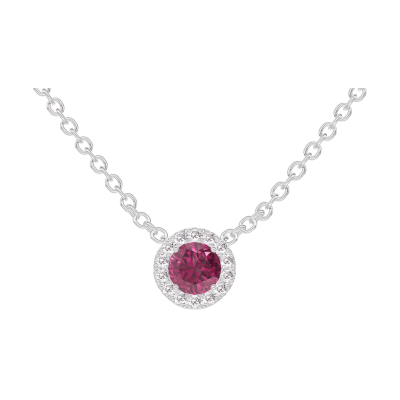 « L'ATELIER » Nº201836Collier Or blanc 9 carats - Rubis Rond 0.3 carat - Halo Diamant - Chaîne Forçat