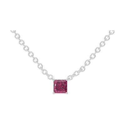 « L'ATELIER » Nº 201860Collier Or blanc 9 carats - Rubis Princesse 0.3 carat - Chaîne Forçat