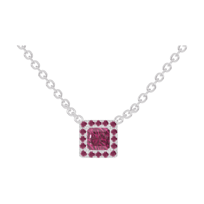 « L'ATELIER » Nº 201875Collier Or blanc 18 carats - Rubis Princesse 0.3 carat - Halo Rubis - Chaîne Forçat