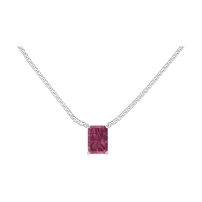 « L'ATELIER » Nº201896Collier Or blanc 9 carats - Rubis Rectangle 0.3 carat - Chaîne Vénitienne