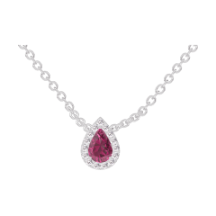 Avec chaîne avec double position 42cm et 45cm en or 18 carats. 15 diamants : 0.09 carat - Or blanc (18 carats = 750/-): 3.3 g. Rubis : 1 - Diamant : 15 - Total: 0.384 carat Infos techniques