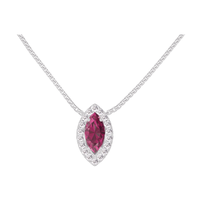 « L'ATELIER » Nº 202000Collier Or blanc 9 carats - Rubis Marquise 0.3 carat - Halo Diamant - Chaîne Vénitienne