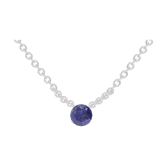 Collier Or blanc 9 carats - Saphir bleu Rond 0.3 carat - Chaîne Forçat