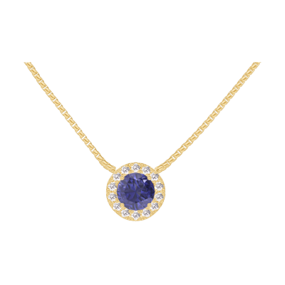 « L'ATELIER » Nº202029Collier Or jaune 18 carats - Saphir bleu Rond 0.3 carat - Halo Diamant - Chaîne Vénitienne